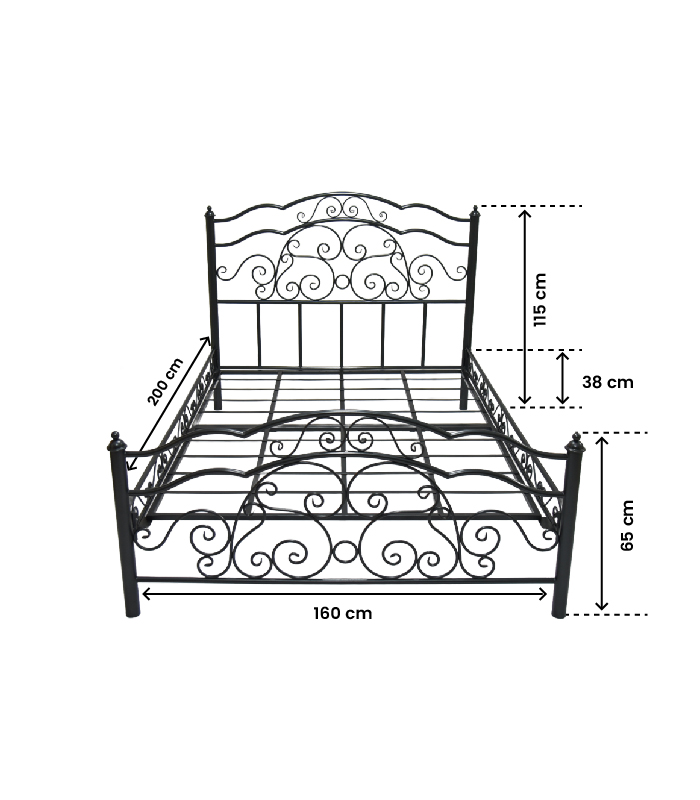 Lit double en fer forgé, style classique, Découvrez l'élégance intemporelle de notre lit double en fer forgé. Fabriqué avec des matériaux de haute qualité, ce lit allie solidité et raffinement.